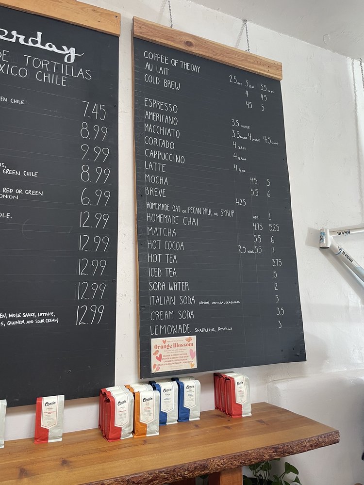 “ Best breakfast burritos in town. The classic with green chile salsa is delicious. For drinks, we enjoy a plain latte with oat milk. The beans are smooth, not sour, and the foam is also smooth and dense. ”